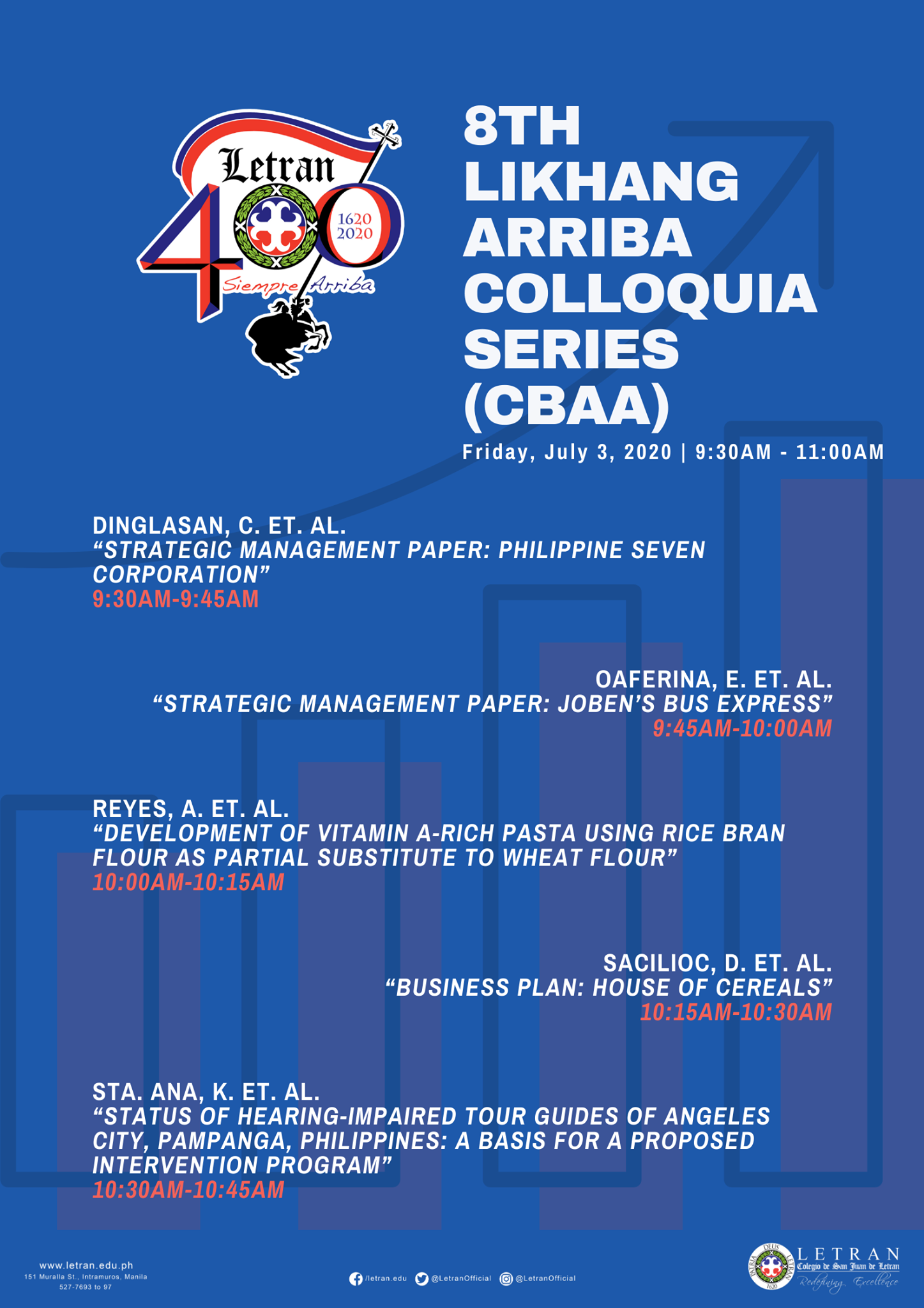 Students from the College of Business Administration and Accountancy had presented their research papers in the Likhang Arriba Student Research Colloquia Series organized virtually by the Research and Publication Department on July 3, 2020.